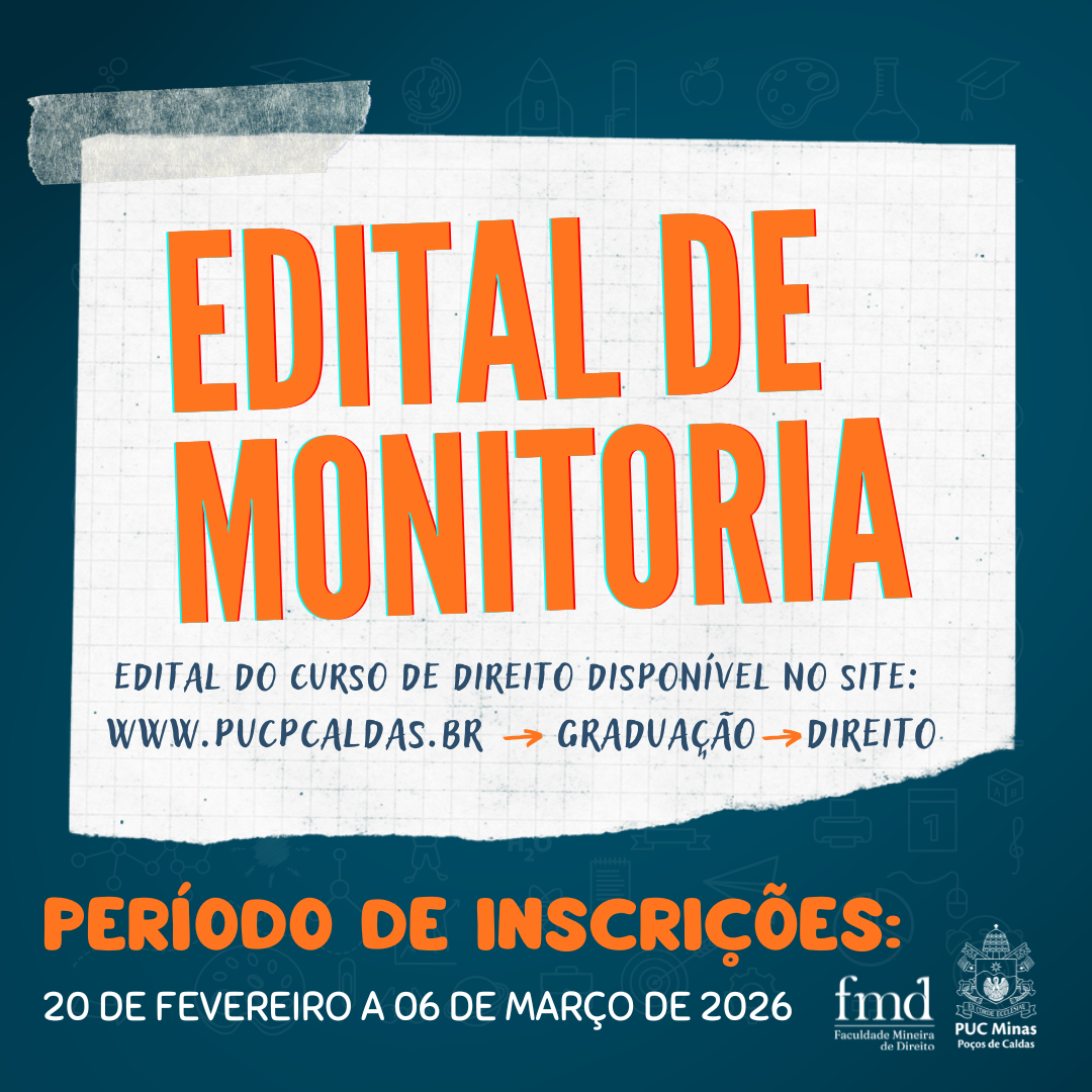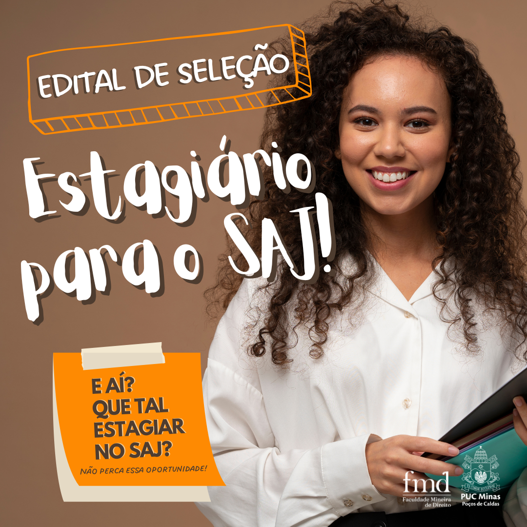 Encontram-se abertas, na Secretaria do Curso de Direito do campus Poços de Caldas, de 20 de fevereiro de 2026 a 02 de março de 2026, as inscrições para o processo de seleção de estagiários para atuação no Serviço de Assistência Judiciária-SAJ